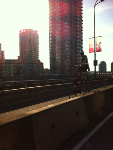 On the viaduct there were a couple of these cyclists driving back and forth. It was so synchronized and weird. Loved it!