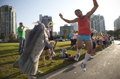 I have to start by saying that Lululemon and every single volunteer, entertainer, traffic director, water bottle pickeruper etc did a phenomenal job yesterday making it an event to remember. It was so well orchestrated and organized that there were very few hiccups. The energy of the even yesterday simply cannot be replicated by any other race and it was so exciting to see all of the lululemon style surprises around every corner. They hired tons of entertainers for the race at almost every 200-400 meters. There were strange clown cyclists, choirs, a group of elderly tai chi practitioners, paddle boarders, dragon boaters, drag queens, mermaids, goofy lululemon staff doing their skits, Specialized Lululemon Clad Cyclists. It was really an interactive love letter to Vancouver and it was neat to see the variety of different entertainers. Lululemon thought of absolutely everything on this course from entertaining your cheer station with bouncy castles, food and activities for the little ones, to cut up fruit and water and gels at every single station, coconut water at the end of the race. The course was very well planned taking advantage of the view at every single point and providing a lot of lovely shade. The bridge and hills where a challenge but I’m really glad they were part of the course. The BMO race I did avoided the bridge and as a result there was a bit of dipsy doodling within the city streets so there wasn’t a view the entire race like there was for the Sea Wheeze. It was an amazing event and I’m so glad that I got to be a part of it.