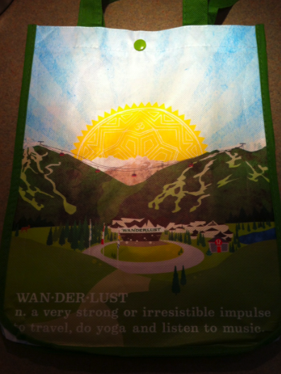 I got this new lululemon shopper at my store today which were made especially for the Wanderlust Festival in Whistler so I’m thinking these are probably just for Vancouver area stores. I think this one is my top favorite of all the shoppers they’ve had and second to the Superwoman Shopper from last year. The graphics on this are really cute showing Whistler Village. Cute, Cute, Cute!!!