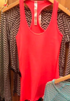 Thanks to Ms. Q for the spy mission on the latest items. I’m in love with the new Heathered Power Purple CRB and there is also a new one with the color code ‘LTFL’ and is luon light. I’m thinking it’s Light Flare (the color of the Ziggy Wee Print). There were new Swiftly 1/2 zips in Currant as well, the Presence of Mind LS’s and some zig zag printed WU’s.