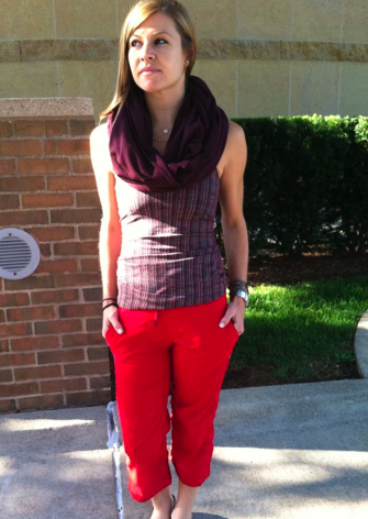 With Deepest Currant Deja Vu Scarf and Currrant Dance Studio Crops