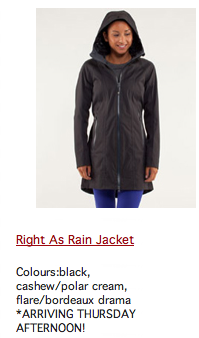 The Right As Rain Jacket is now listed on some US product alerts. Does anyone remember what the price was for this jacket last year ($178!) The product alert says it comes in Bordeaux Drama and I may well be tempted to get it if the price is right.