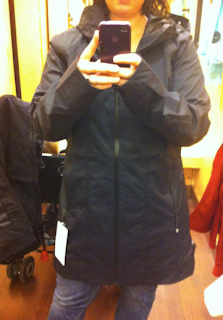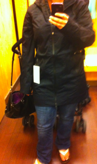 I also tried on the Cashew version of the jacket in my TTS 10 and I really liked the color but in white/off white it’s not as slimming and I also didn’t love how the back looked over my butt. The color makes it look a bit more like a snow board jacket to me while the black looked more urban soccer mom (not that thats a great look to shoot for but it suites my lifestyle a bit better). I’d also never be able to keep the Cashew clean