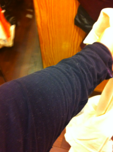 No luck for me at my store today. I went in hoping for Black Swan Wunder Unders and some sort of fall wrap but neither of those items are in/exist yet. The Uba Hoodie was a huge disappointment for me. I’m quite frankly shocked at the audacity of the price ($178) on a hoodie that is primarily polyester and in which the inside is so fuzzy that it leaves white fuzz all over your clothing when you take it off. This to me has always been the sign of a cheap discount hoodie when you have to de lint yourself after wearing it. Stretchy and soft it definitely is but this is no where near the quality of the old cotton french terry scubas (the ones with the ribbed panels). I’d wager that the more recent scubas that feel ‘stretchy’ are actually not cotton french terry but blended with polyester as well. I’ll have to have a look at that when I go back. The outer material of this jacket has slight sheen to it so before checking this out in store I already suspected it would have polyester in it.