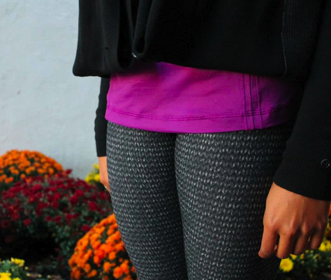 I managed to use my weird gift card without a pin # in store today. The lovely Ed didn’t know why I got one that looked like that but it definitely still worked at the till. I picked up the Herringbone WU’s which has a Rose/Alberta Lake/Black inner waistband. The outside of the pants are regular black herringbone. So that solves the mystery as to why they are listed the way they are on the website. I got my TTS, size 10 and they are perfect. I don’t feel like they are a size up item but they are wonderfully compressive and smooths everything out. I found the ankles were a bit tough getting up over my feet but once on they were totally fine and I just folded the hems up.