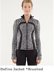My order tonight was the Define Jacket in Rose Herringbone Black and the Black Swan Cool Racerback. Totally excited about these two items and it’s a happy surprise to read that the Define is brushed. I wasn’t sure if there is a difference in size in Defines like this one (Herringbone, which may be stretchier and softer) so I stuck to my usual Define size which is a size up from everything else I have.