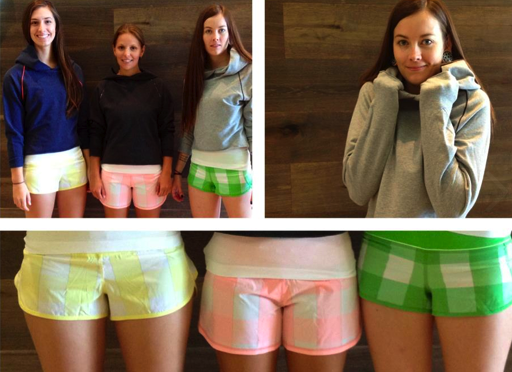 Holy Sh@t, can you tell I’m excited??? A new green is coming!!! And this adorable new Gros Gingham Print. The Green is ‘Frond’, yellow is ‘Mellow Yellow’ and pink is ‘Bleached Coral’. I love this Frond Green and I hope we see lots of it. And lots of this print. The outside two shorts are speeds and the middle are Groovy Run shorts. Also, new pullovers are featured here.