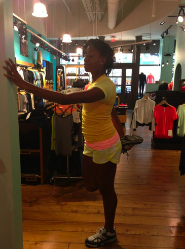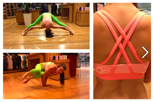 From Australia, the Energy Bra in Bleached Coral/Pop Orange. I definitely want an Energy bra, just not sure what color would be most versatile for me. The crops appear to be Frond Green Ebb & Flow II like crops (like on the banner photo for crops on the website), or possibly just Wunder Under Crops in Frond Green.