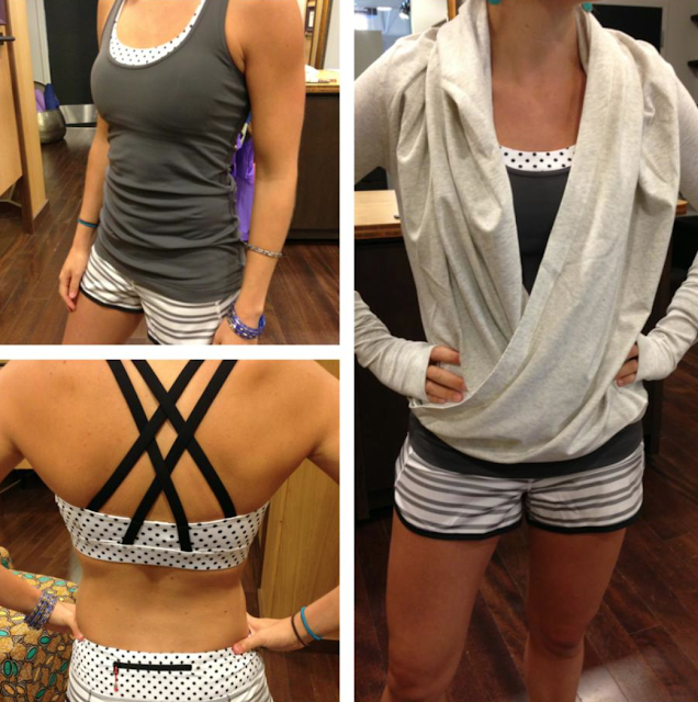 The Soot Light Cool Racerback is #1 on my wish list, Mod Dot/Black Energy Bra, Twin Stripe Speed Shorts and Iconic Wrap.
