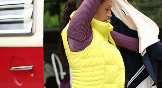 Looks like a new Puffy Down vest over a Swiftly LS in plum. Looks identical to the tonka striped Plum Swiftly I got last year at Seawheeze. Watch the lululemon video here.