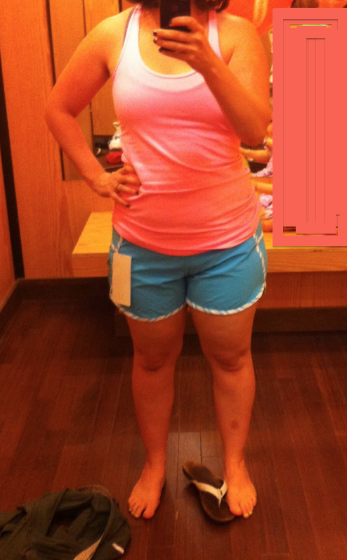 Sorry for the junky pictures today but its all I have so far of whats out. My store didn’t have a lot new in today but they did have the Run: Track Attack Shorts in in various colors and Run: Fast Track Tanks (I think thats what they were) in Love Red Twin Stripe. The Track Attack Shorts came in Spry (with sizzle waist band), solid Love Red, Black Twin Stripe. I really love these shorts. I got a pair of solid black but I’m considering getting the Spry instead. Fit is TTS if you are curvy on the bottom like I am.