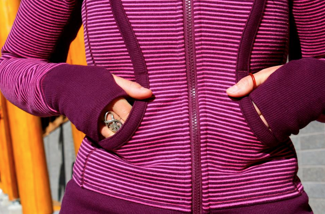 Scuba Hoodi in Hyperstripe printed Afterglow/Plum, Step Lively Crop, Hatha Happy Hour Bag