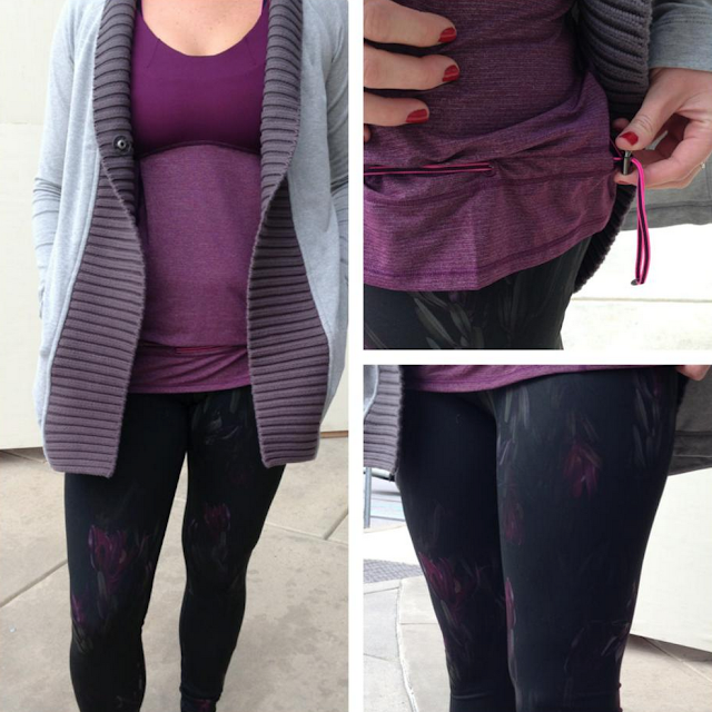 New Bliss Break Wrap which looks like a cotton french terry wrap with knit detailing at the lapels and new Silverscent tank similar to the Run: Tame Me Tank in Plum paired with Midnight Iris Wunder Unders.