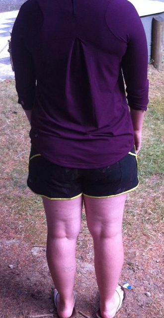I’m also wearing my Plum Tuck And Flow Long Sleeve in Plum and I am totally in love with this top. I float between an 8 and a 10 in tops depending on style and how bloaty I’m feeling at the moment and I got the Tuck And Flow in an 8 mostly because that was the only size left, but I’m happy with the fit. I love that there are no athletic details such as venting or excessive reflective stripping or color blocking on this top. It’s just nice and soft RULU in a solid color. I also got the Angel Slolem Stripe one which initially I was hanging on to until I could find the Plum, but now I want to keep both.