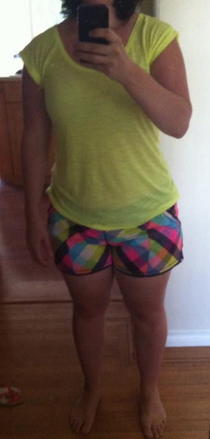 This wont be a detailed fit report of the Shake And Break Shorts as I think these shorts fit pretty identically to my Run: Track Attack Shorts. TTS for me, 4″ inseam with nice wide leg openings. The Sea Check Print ones are 2-way stretch while the Midnight Iris (not shown) are 4-Way Stretch. I’m not sure I love how the print is oriented on these as much as I do on the speeds which shows the check pattern horizontally instead of diagonally. I think having it diagonally though is more slimming for this larger cut short. I also prefer the waist band on the speeds (which I can’t wear) because the wider luxtreme waistband in plum frames in the print more and blocks it in keeping it from looking busy. I’ll probably end up keeping them though as this is the first time between these shorts and the Track Attack Shorts that I’ve found a model that works for my curvier thighs and that are modest and accommodating enough for Crossfit. I really LOVE the Midnight Iris version though.