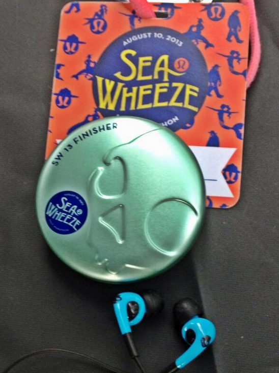 This years finisher medals from SeaWheeze 2013 are carved wooden disks, sort of like round tree trunks. I really like that they are different from last years medal as well as from every other race medal. Looks like they are on shoe laces just like last year. Finishers are also getting Skull Candy ear buds.