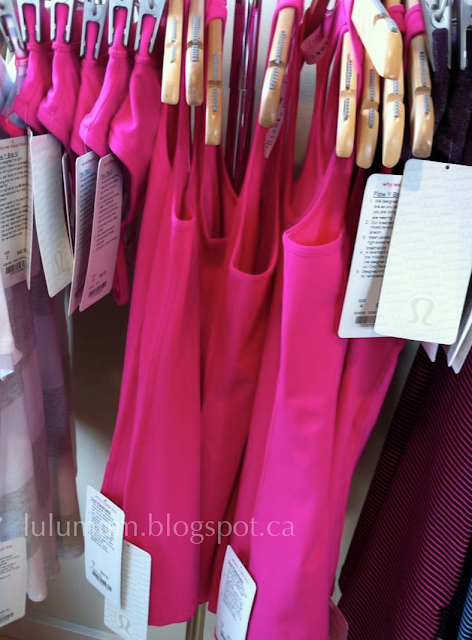 In a US showroom, there are solid Paris Pink Cool Racerbacks and No Limit Tanks. Thanks to Ms. A for sharing her find.