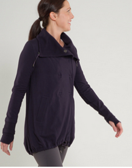I got to my store this morning in hopes of seeing the Passage Sweater and the Post Chaturanga Pullover but all that was in today where the Gratitude Wraps in all four colors. I tried on my usual size 8 for Gratitude Wraps (size down from my usual size in most items) and I was pretty disappointed in the changes that have been made. Something about the bottom hem seemed off to me and it looked as though it flared out a bit more and bubbled over less. Its as if they nipped in the material on the sides to reduce bulk but the hemline is wider and more a line and it just doesn’t pool the same way. I’m pear shaped so I would have thought the flared out hem would work for me but I prefer the fit of last years version better. Possibly the lapels are smaller in this years version too, and its now lacking a drawcord in the lapel. The colors where not as vibrant in person as they are online and they looked quite muted so my overall impression was ‘pass’.