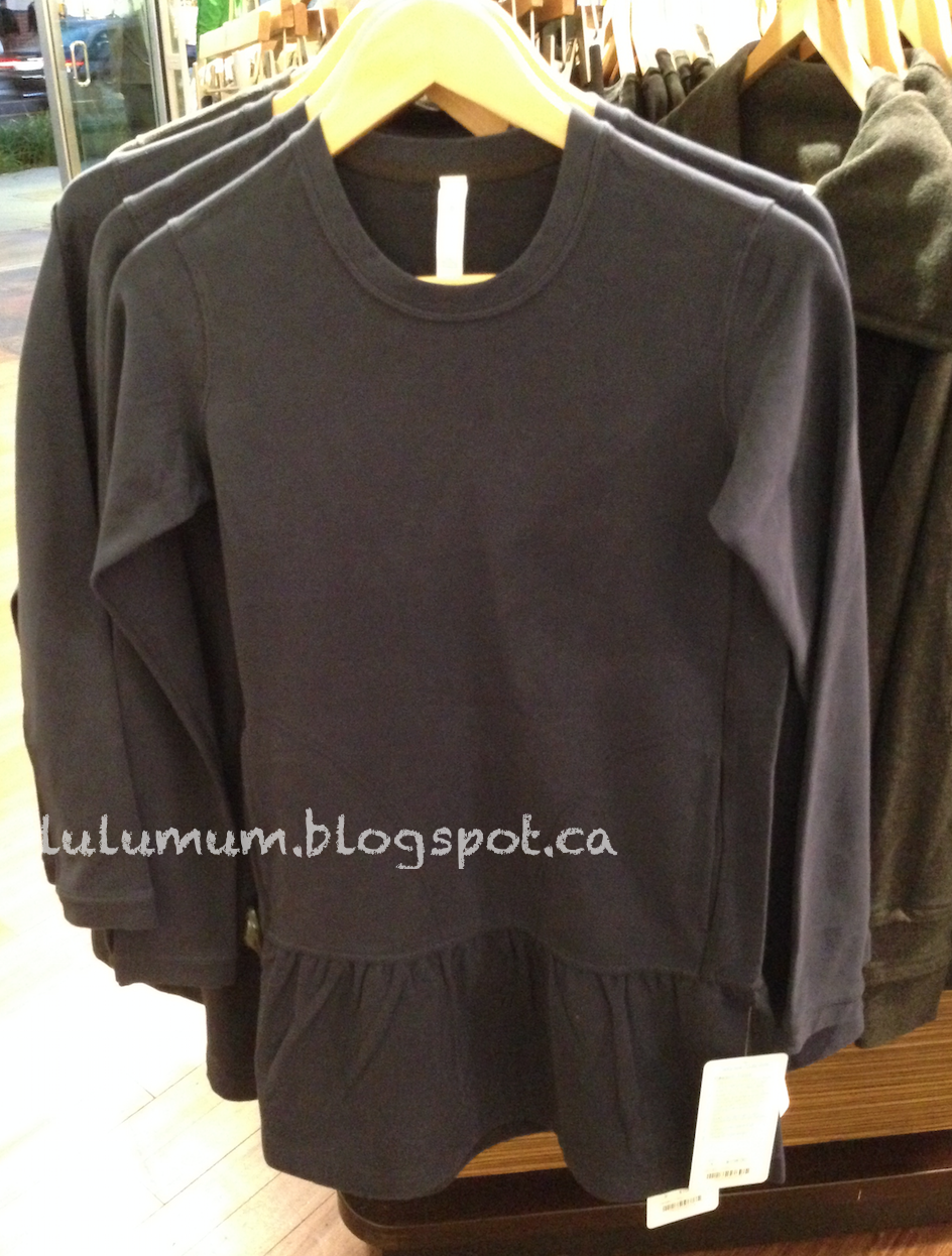 Thanks to lovely reader Ms. L for spotting this in a US store and taking a snapshot for us. Its a new cotton french terry Peplum Tunic Sweater. My 3 year old has one in purple. Seems to have hip pockets as well.