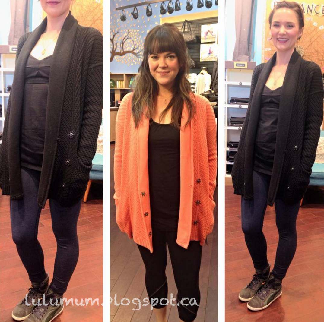 My order from last night shipped out in record time this morning. By 8:30 I had received my shipping email which I think means orders last night where on the light side. I’m also now second guessing ordering the Post Practice Cardi in size 8 instead of size 6. I tried on my 6 black again today and really love the fit of it – hopefully my store gets the silverspoon/white in so that I can try both sizes on in that color. Unfortunately, but 7am this morning all the white/silverspoon was sold out online on the Canadian side.