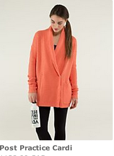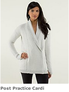 I ordered the Post Practice Cardi in Silverspoon/White in an 8 (one size down from my usual), and would have loved to order the Pink Zing Apex CRB but Canada never got it. Hopefully we get it soon. Also, where the heck was the Deep Zinfandel/Winter Orchid Energy Bra back in November?? I definitely would have gotten it back then. No Camo Wunder Unders uploaded, or the Chai Time Pullovers. I saw the Pink Zing Swiftly items in store today and they look very different in person from what they are looking online. They don’t look this coral/orange in person.