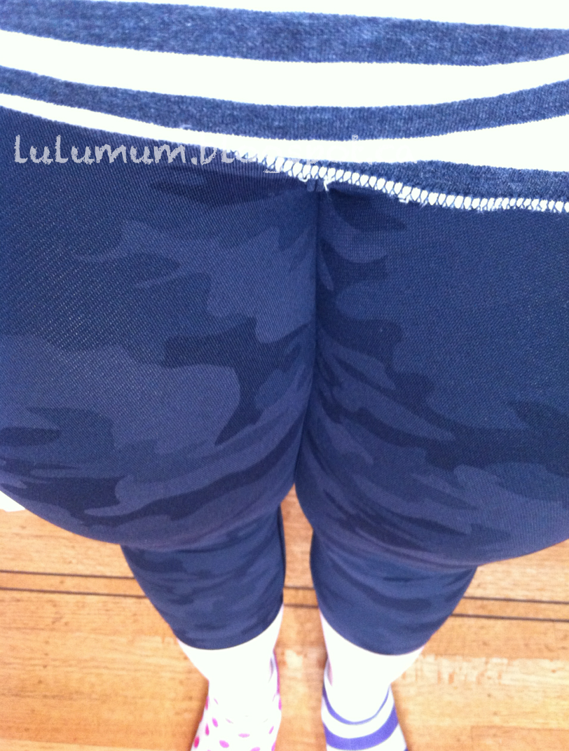 Hooray! My store got the Black Soot Camouflage Wunder Under Crops in this afternoon and they are actually the new denimy textured luon just like the Petite Fleur, Floral Platoon and Milky Wunder Unders. I love this new material as its almost all Nylon, matte, compressive, textured and completely opaque! I’m thinking I’m going to keep these Wunder Unders instead of the Fatigue Camo Mod Moves Crops that are supposed to be coming since they are a lot more subtle and will pair with almost every other color I have very easily. These were flying off the shelves this afternoon which is why I think the first store I went to didn’t have them.