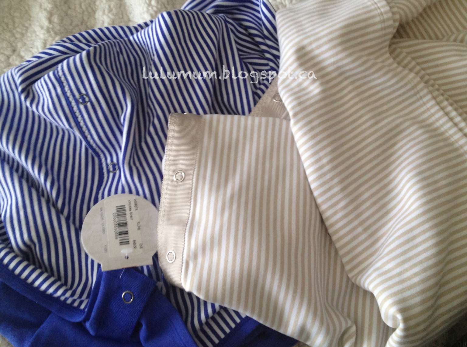 Two new Vinyasa Scarves spotted in Canadian stores (not sure about US stores). Tonka Striped Pigment Blue wich reverses to solid Pigment, and Tonka Striped Cashew which reverses to solid Cashew. I am really excited that Pigment Blue is coming up in various items. I have the Cool Racerback and love it and could really love a Pigment Blue Dance Studio Jacket – although I don’t even know if that exists or not but I think it would be beautiful.