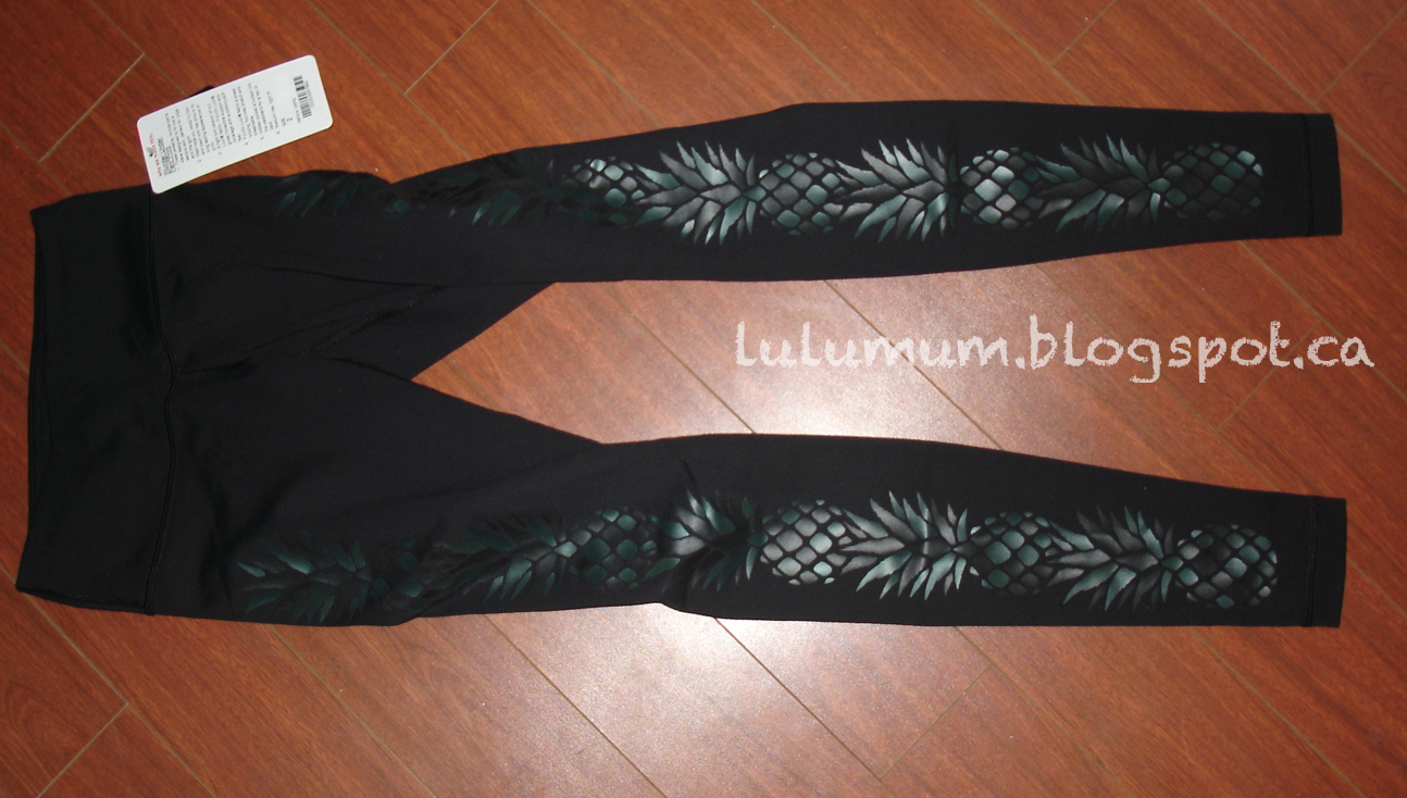 Did you order Camouflage Pants on upload Monday and receive Pineapple embossed pants instead? It seems a batch of these hideous Pineapple printed pants were labelled incorrectly at the warehouse with camouflage sticker labels and so when the orders got picked, these got grabbed instead of the camouflage pants. It also seems like these are old vintage luon (judging by the label on the inside of the pants), so old unsold pants that lululemon decided to recycle by embossing pineapples on them. Thanks to Ms. T for sharing her pictures and letting us know.