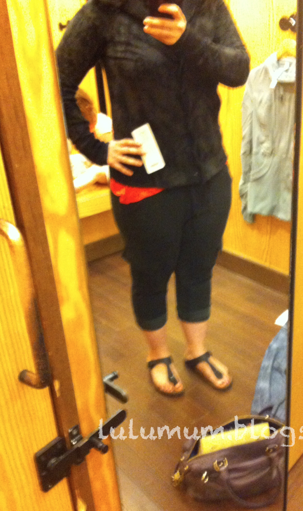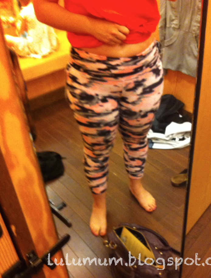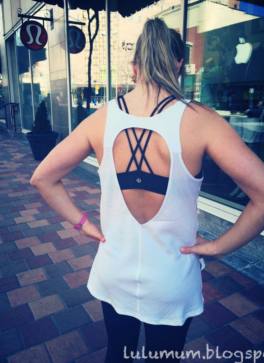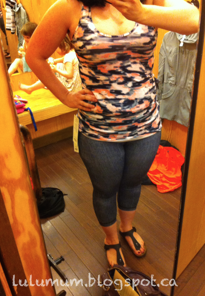 The size 8 Whamo Camo Wunder Unders where the right fit for me though (for function over fashion purposes), and I love the denim luon. I wasn’t crazy about the print on bottoms though but I did really like the Cool Racerback so thats what I grabbed.