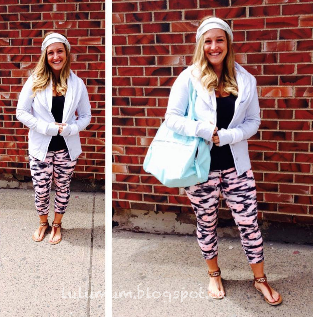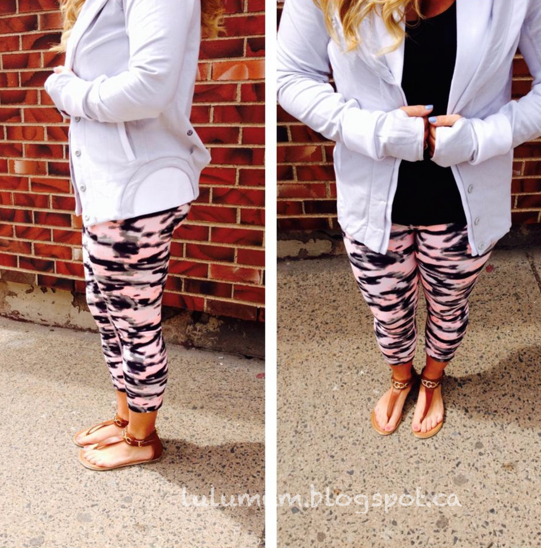 Ooh, looks like I’m running to my store later today. This is a Halifax store that has both the Wunder Under Crops (denim luon) and the Cool Racerback in Whamo Camo. She is also wearing the To Class Jacket I posted about last night in the Product Alert images which is coming in Black Seabed Print.
