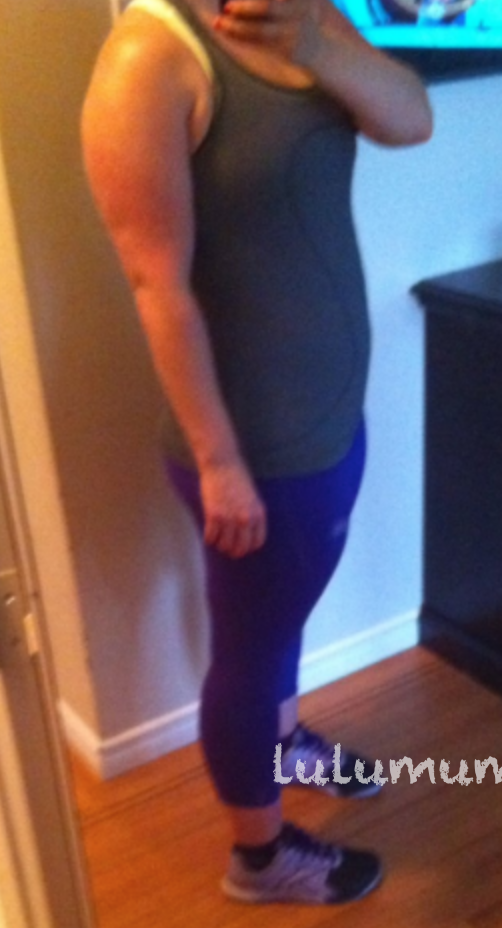 Roll Down Wunder Unders in Bruised Berry (LOVE!), Swiftly SL in Black with White Stripes, Faded Zap Energy Bra and Bruised Berry Smartwool Socks. As my To/From I wore my Angel Wing Slalom Stripe Tuck And Fly LS. The roll down wunder under pants are miracle pants for me. They completely cover my mommy tummy and they stay up during runs, double unders, burpees, pretty much anything.