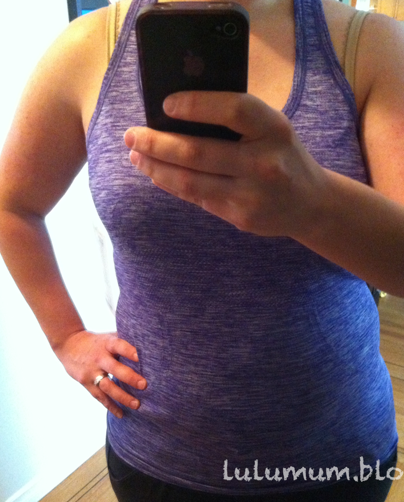 My store got this new Swiftly SL in today in Heathered Bruised Berry. I liked it a lot so I picked it up but I’m now remembering why I don’t wear Swiftlies to Crossfit. This morning I wore the one and only Swiftly SL I have to Crossfit and I picked up a box jump box to bring across the gym and I could hear the wood edges snagging the front of my shirt. No pulls that I could see but it made me regret wearing it.