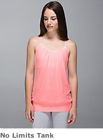 I could be tempted by the Seamlessly Plunge Bra if it uploads, and possibly the Forest Green Serenity Hoodie. The Serenity Pants sold really well online and in stores but I think if some stores have some straggling around they may mark them down. My store had the Vita Loca Tank marked down and the Rollin’ With My Omies Pants. I’d love the Omies pants in black but my store only had the print ones. My store also has had the Blissed Out Wrap, and a few straggler Chai Time Pullovers marked down at one point (they’ve since been marked up).
