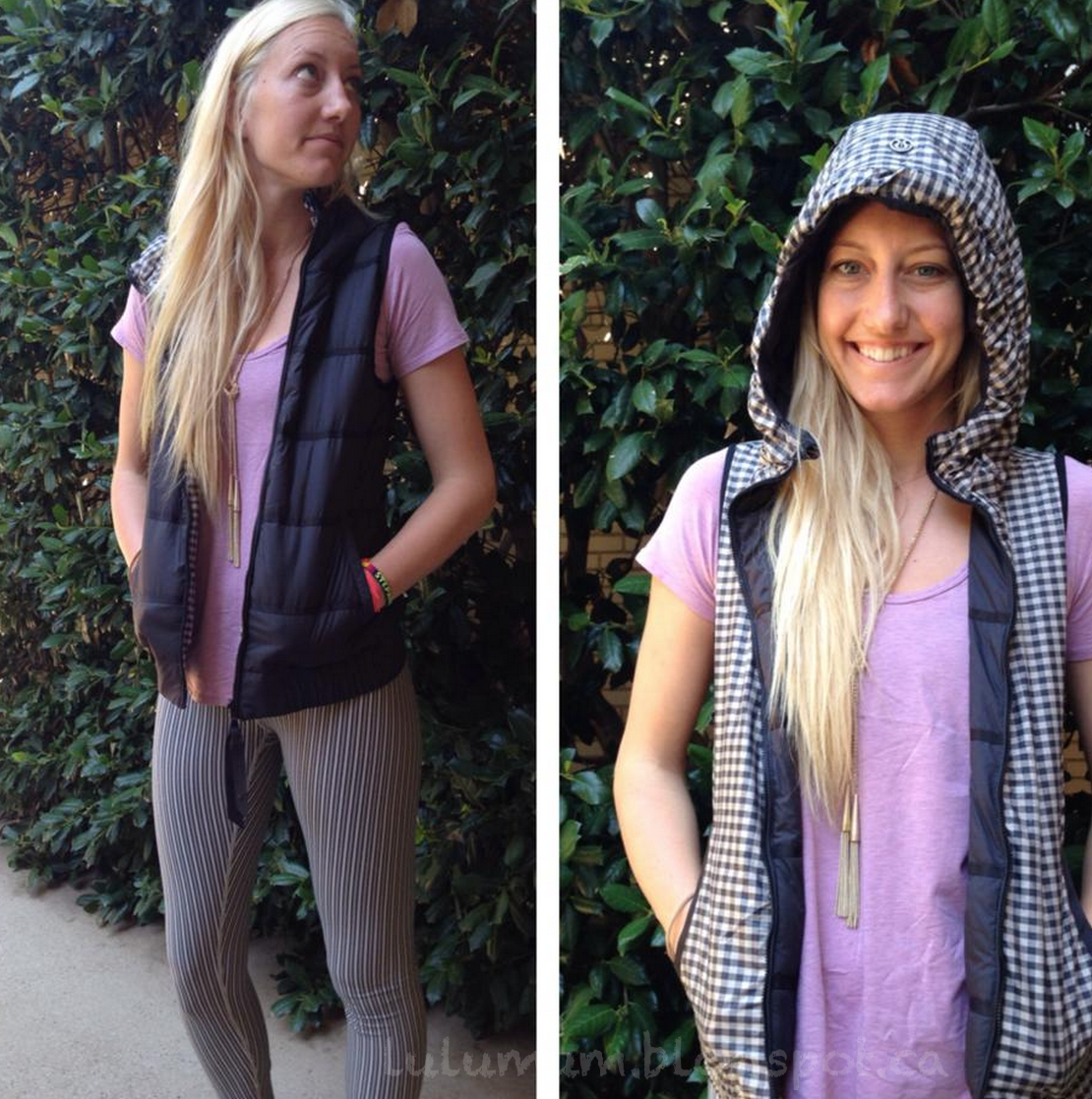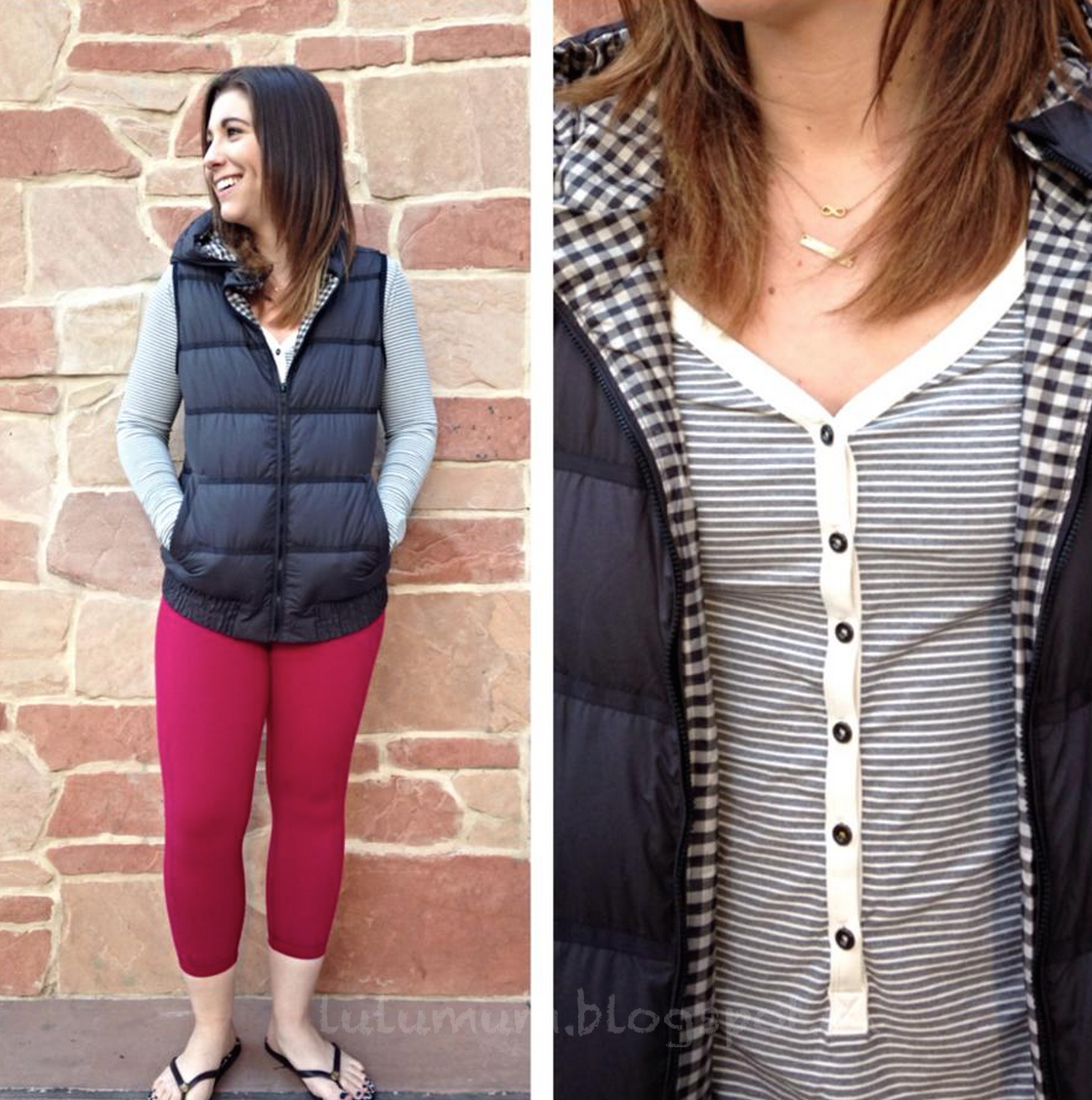 The Black Gin Gin Gingham Chilly Chill Puffy Vest is very cute paired with the Bumble Berry Wunder Under Crops and Awesoma Henley