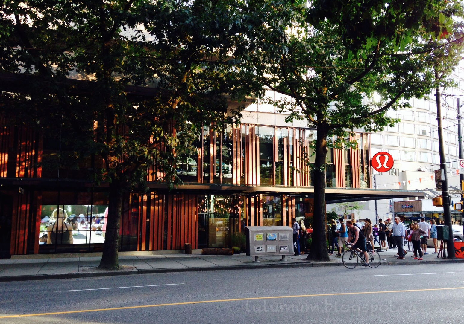 The new Flagship Lululemon store on Robson was due to have a soft opening today (and the grand opening party this Thursday) but they were a bit delayed so I didn’t make it down there. Thanks to Ms. C for sharing her photos. I LOVE that they incorporated the green space at the entry way in the middle of bustling downtown Vancouver. What I love most about this location is that its a block away from my Dr.’s office so when I have an appointment I can now easily swing to the store. Tons more parking in this part of downtown as well.