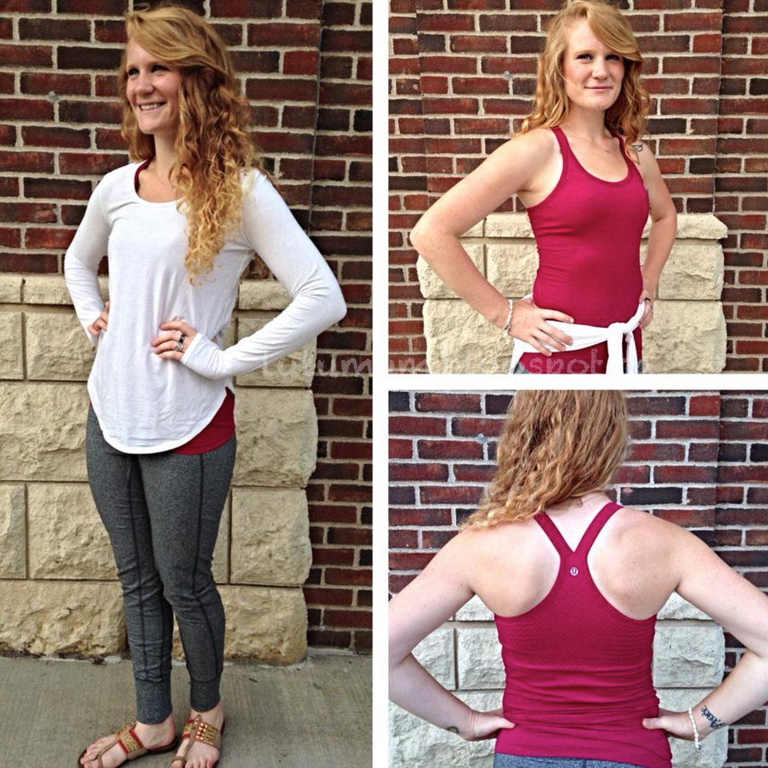 A new cranberry red! This may be Bumble Berry (a new The Mat is out in Bumble Berry) but I also think it could be Cranberry (as I’ve been mentioning is coming for the past few weeks). Cranberry has long been rumoured to be an upcoming color. Sometimes they use a similar color for the mats or bottles that are a close match to the apparel colors and not the exact same color since color can vary from material to material. The pants she’s wearing are interesting too.
