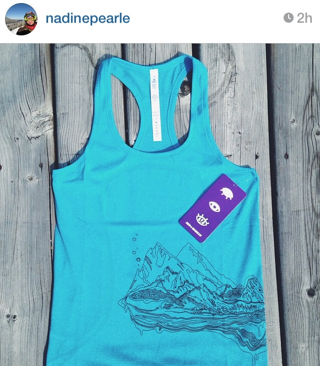 Another shot of the Swiftly SL print. It is Mountain and Ocean in Japanese Printmaking styled illustration. There was another Swiftly SS in Concord Grape with an Eye logo on the front.