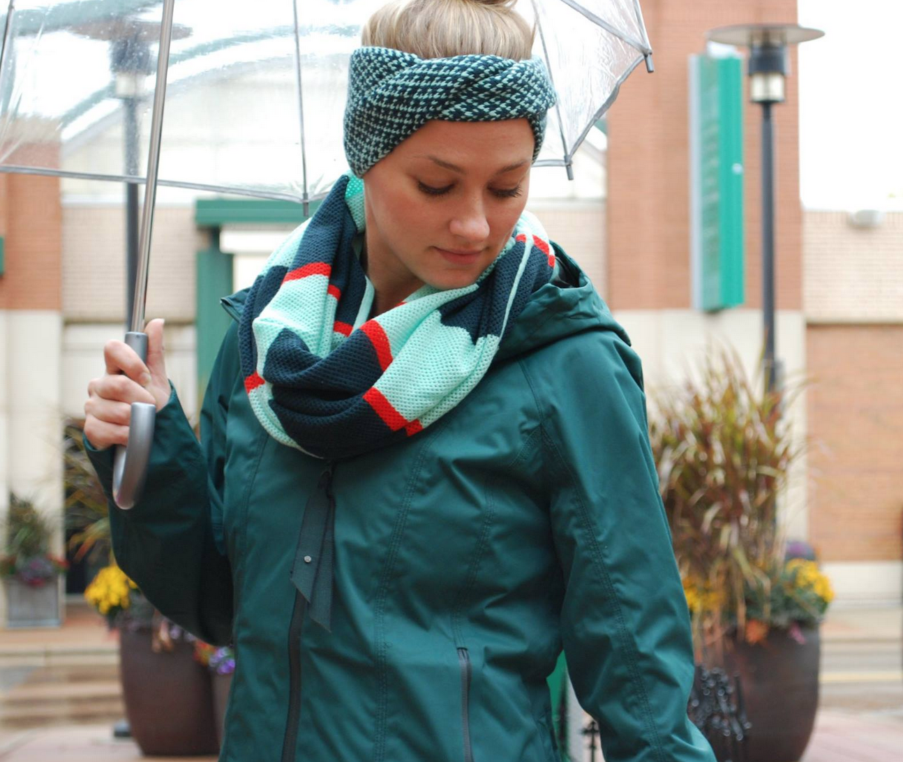 Bundle Up Scarf, Fuel Green Right As Rain Jacket, Twisted Bliss Headwarmer