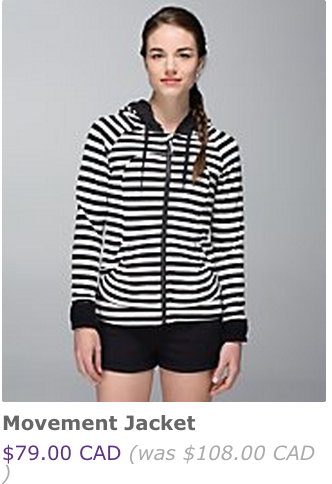 The Movement Jacket is a great score if you can get it on markdown. I love the one I got back in June. I think the only thing that would have tempted me tonight is the 5 Year Yogini SS Tee. I got a couple on markdown when I was in Vegas and fell in love with the cut of that tee so if I see them marked down I wanna snatch them up.