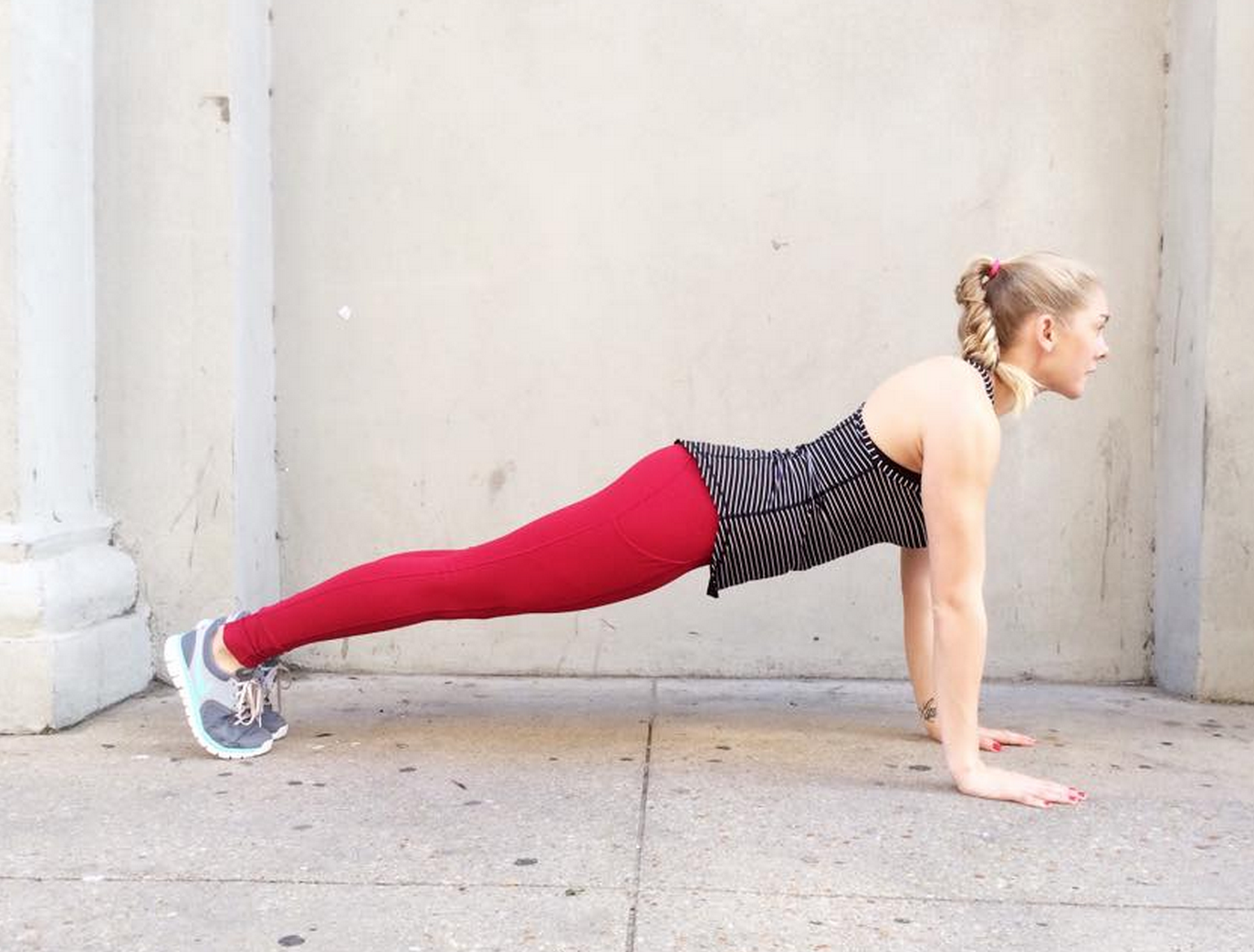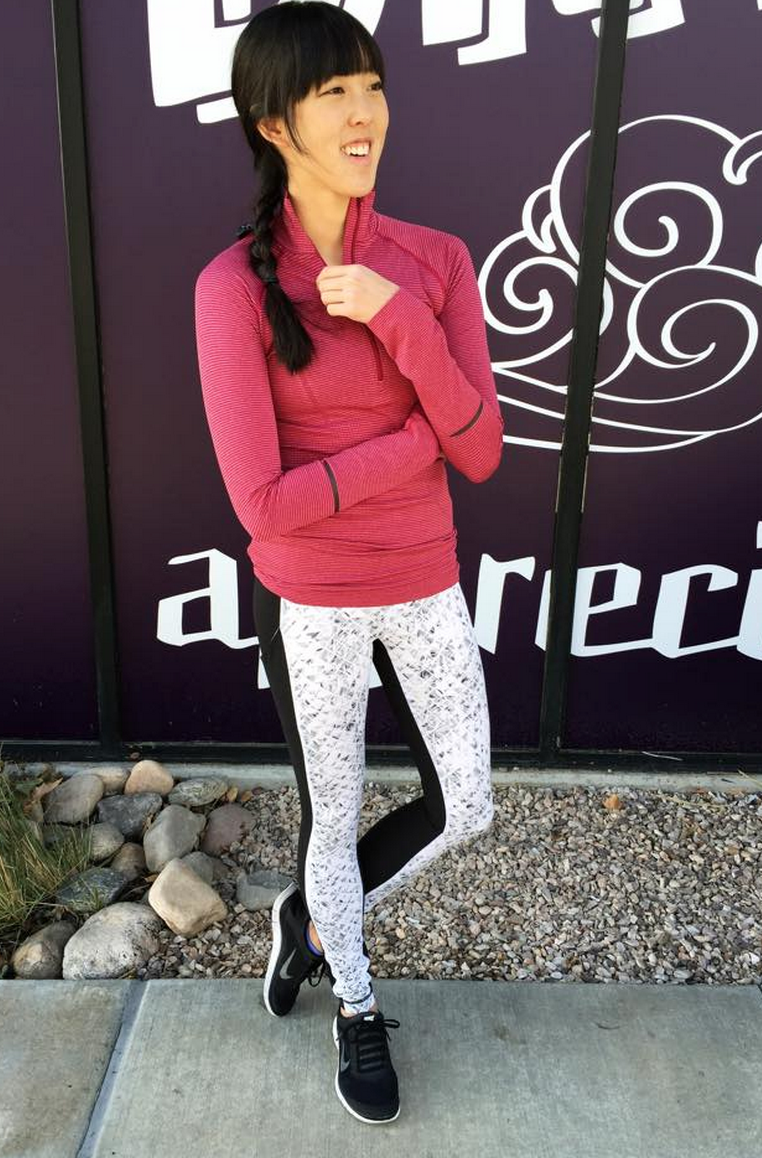 Deepest Cranberry Speed Tights, Parallel Striped Think Fast Tank