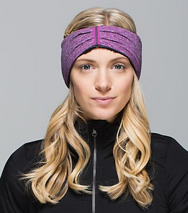 Sherpa Fleece Lined Ultraviolet Pique Mini Check Run With Me Earwarmer