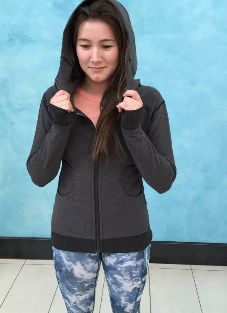 I purchased the On the Daily Hoodie today in heathered fatigue fog and I am in love..super soft relaxed fit..went with my TTS 10..tried size down 8 was ok but I lost some length and I am 5'8" so I went for the 10..I love Love.. also tried the PU version in gray..different fit slightly due to coating, my store only had the gray I am not sure if they had the blue combo but in the end the Fatigue fog won me over..Plus I figured if I were to wear on a rainy cold day I would throw on my Rain on Jacket over my new On the Daily Hoodie!!!