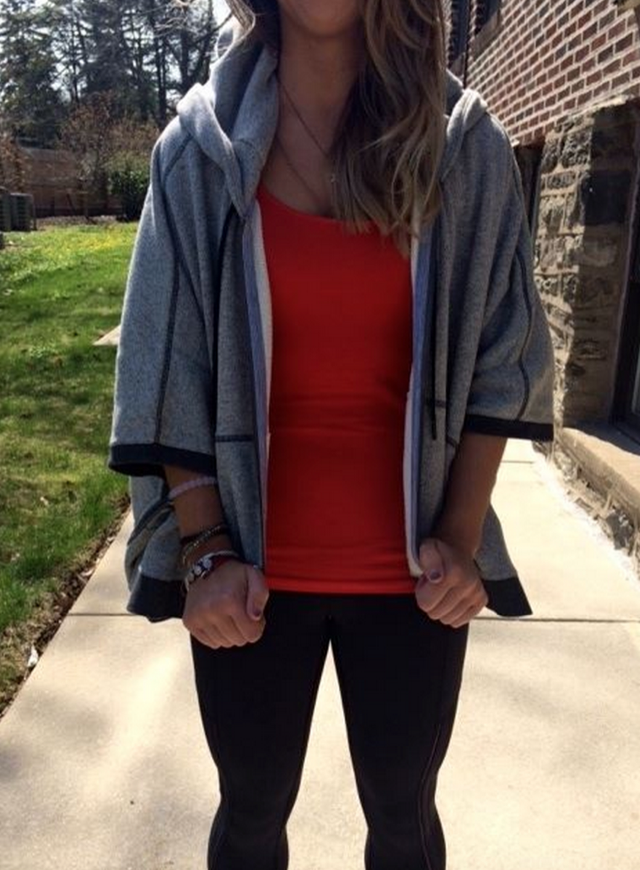 I’m not sure what tank she is wearing under the poncho but it looks like maybe a new First Base Tank in Electric Coral. I’d love a Cool Racerback in this color.