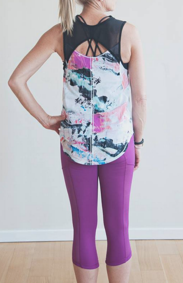 I got my high times multi and the sculpt multi – I couldn't decide which to keep. I did size down on sculpt and it was still a bit loose on tummy but I like how it looked on you so I sized down. The chest was still OK, fabric has stretch so I have no concerns. It is really cute, just not sure I want both items in same print. I love the high times…I thought they would look really busy but its in a good way – some of the panels have solid magenta or black so it is neat looking. Of course they were all sold out so I could not compare others to see if the pattern placement was better. The butt has the big blothches of the blackish greenish colour so no issue with see-thru white butt.