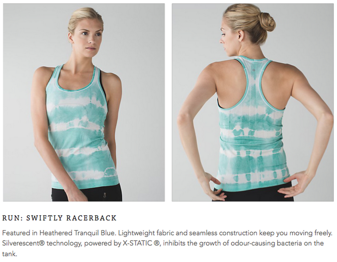 wow – i agree with you – nothing for me! Thank goodness – after this week – picnic dress, red and bali CRBs, peacock LS swiftly, alarming wuc —- and at 1am – amala tank (yeah!!) and then seamless crop in iris and then later in gator – I think i did enough damage. Tomorrow I am travelling to the store to see if they got in the picnic dress, just to try on a bigger size in case I ordered wrong size, and I am hoping the black/white WUC show up…that would be sweet! Anyone in Ontario seen any of the new stuff yet (I know some stores put it out Thursday night instead of Friday)….