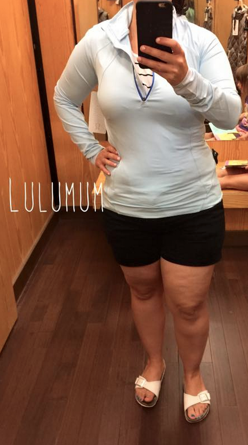 I saw this tee at the last minute and so badly wanted to buy it. It’s gorgeous in person in the Pipe Dream Blue. It’s the Seriously Light Luon vs. the Mesh version of this tee that I prefer but I may end up going back for this if I can return something. I have the Pretty Plume Angel Wing High Times size 10 on the chopping block if anybody is interested.