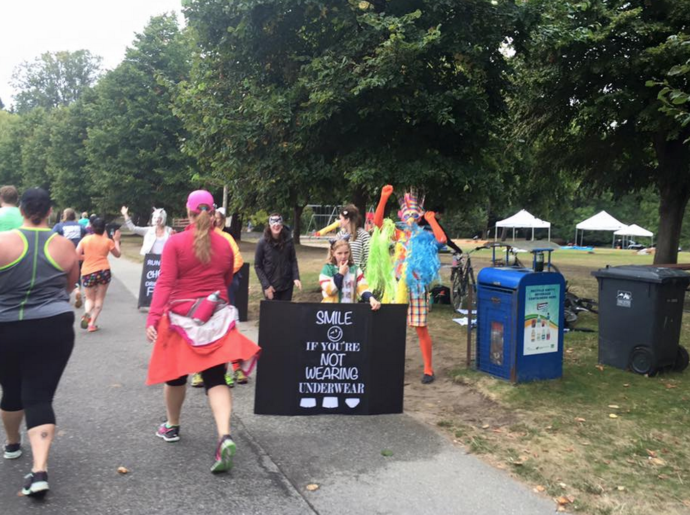 Too funny – I was close to the stroller couple with 2 kids for awhile and saw the wedding couple right around the same time you did. I was probably by you for a few miles on the seawall without realizing it.