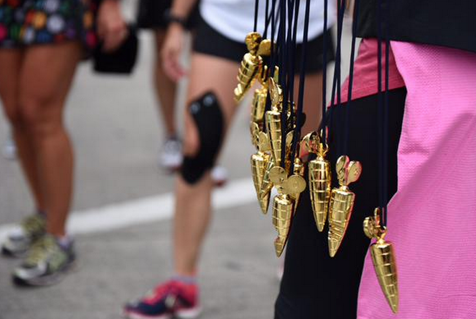 The medal!!! I rounded the corner and saw gold and I thought it was actually a plumb level. I knew instantly that I liked it and I loved it when I realized it was a golden carrot with a bite taken out of it. The medal was heavy around my neck though and it actually weights in at 1lb. That is substantial bling! It didn’t feel great on my neck at that very moment but I couldn’t stop admiring it.