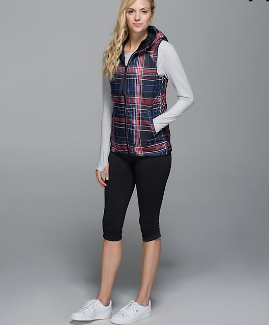 I can't wait for the vest in U.S. to try altho thinking I like the style of the one I bought last fall better. Still want to try it. Tonight I couldn't help ordering the pipe dream blue ace skirt since I love that color and like the white one I have already. And finally got my white speeds that I have waited all summer for! Kind of pissed it's basically Sept but at least I will have for next summer. Also ordered the pink lemonade CRB to try but can anyone comment on how it compares to flash light one recently released? I did not want to order such summery things but damn lulu for releasing colors I couldn't resist!