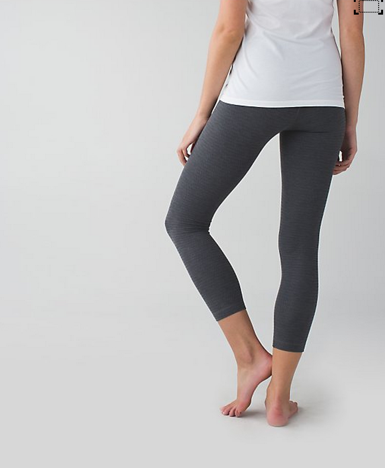 Thanks lulumum! I just received my grey pique HT and to my surprise they are NOT fullon luon! I hate that they categorized them wrong. The textured material seems scratchy to me 🙁 but they are otherwise a beautiful grey lightly textured pattern. I just don't think I can do indoor spin or running in them. Ugh if only they were fullon luon. Oh! To add to sizing, when I took them out of the bag they were TINY!! But they stretched to my usual WU fit. I hope they don't loose shape.